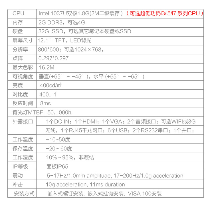 控匯(eip) 1037U 低功耗工業(yè)平板電腦