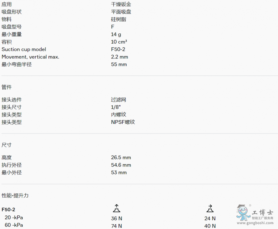 PIAB派亞博 0101753 平面吸盤 F50-2,接口:1/8“NPSF 內(nèi)螺紋,帶網(wǎng)狀過濾器 |