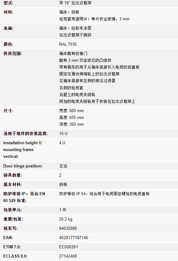 rittal威圖 7644.000 壁掛式箱體 AE 帶 19" 拉出式框架