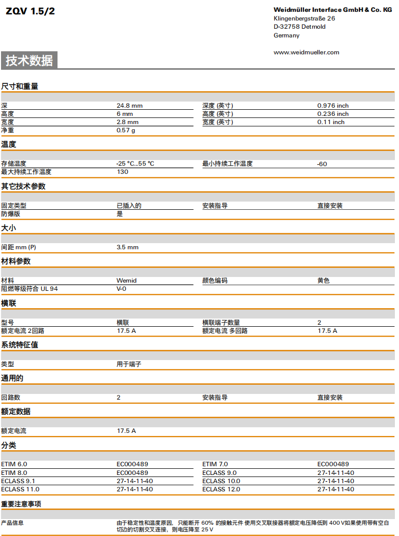 Weidmuller ZQV 1.5/2 魏德米勒 接線端子橫聯(lián)件 訂貨號(hào)1776120000 |