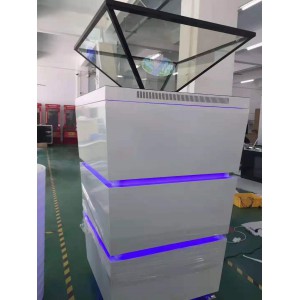 2: 柜體時尚美觀,有科技感。全息玻璃透過率達到百分之九十以上,空間成像色彩鮮艷,對比度,清晰度高;具有空間感。