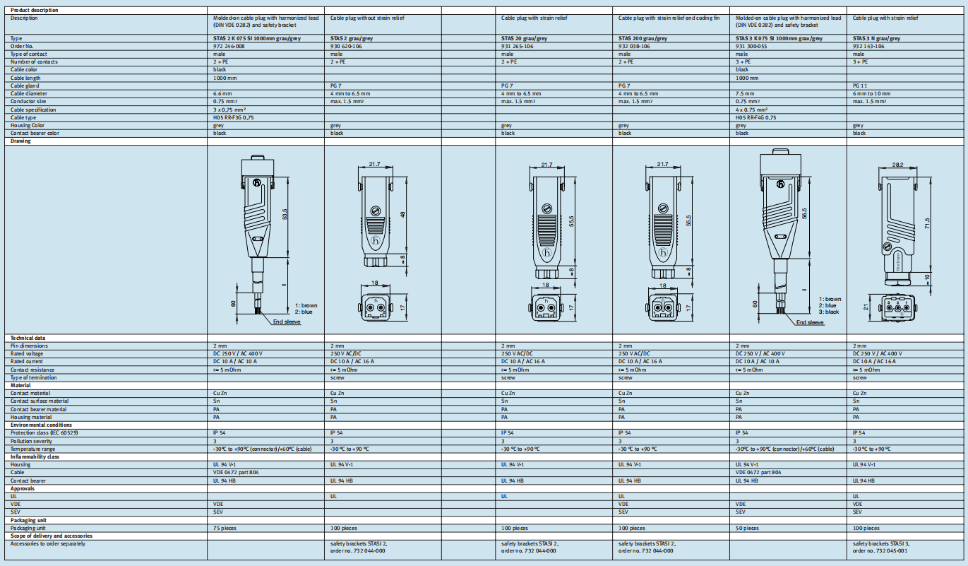 德國赫斯曼(Hirschmann)STAS 3 K 075 SI 1000mm grau/grey(931 300-055灰色插頭接頭連接器